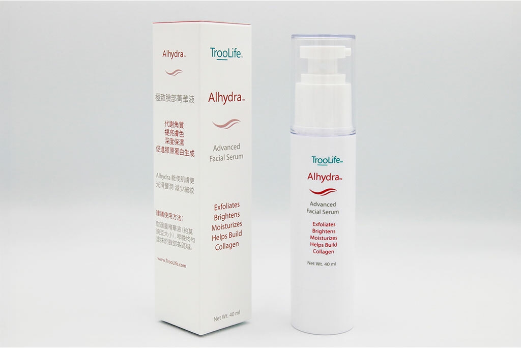 「Alhydra极致脸部菁华液」是一款先进的护肤配方,专为 TrooLife 独家研发,通过代谢角质、透亮肤色、深度保湿及促进胶原再生,令脸部肌肤重焕健康年轻状态。